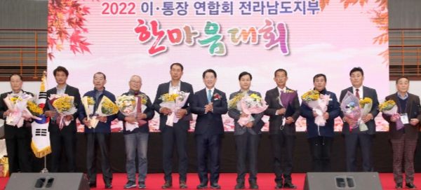 전라남도는 18일 영암 실내체육관에서 전국 이․통장연합회 전남도지부 김은주 회장 등 전남 연합회원 700여 명이 참석한 가운데 2022 전라남도 이․통장 한마음대회가 열렸다고 밝혔다.