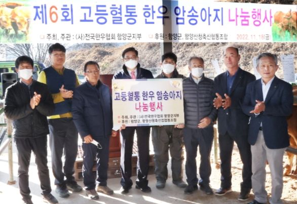 [한국기자연대] (사)전국한우협회 함양군지부는 18일 함양가축시장에서 소규모 한우 사육농가 우량 한우 개량을 위한 ‘고등혈통 우량 한우 나눔 행사’를 실시했다.