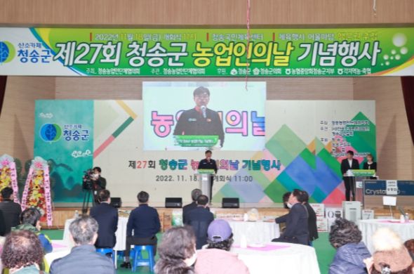 농업인의 날 기념행사는 농업인의 날을 맞아 농업인들의 노고를 격려하고 농업인 단체의 화합과 단결을 도모하고자 청송군농업인단체협의회의 주최·주관으로 매년 11월에 개최되고 있으며, 이날 행사에는 윤경희 청송군수를 비롯해 권태준 청송군의회 의장 및 군의원, 각급 기관 단체장 및 농업인 등 1,000여명이 참석해 성황을 이뤘다.