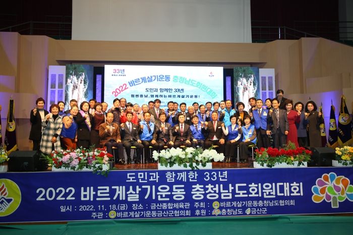 [한국기자연대] 바르게살기운동 충남도협의회가 주최하고 바르게살기운동 금산군협의회가 주관한 2022년 바르게살기운동 충남도 회원대회가 지난 18일 금산군 금산종합체육관에서 개최됐다.