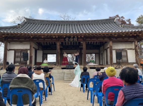 이번 공연은 향교를 배경으로 의성시낭송회의 의성 선비들의 풍류와 멋‘한시 낭송’으로 시작하여 학생들이 공부하던 향교에서 의병이 창의하고 민중이 힘을 모아 결사항전으로 나라를 지킨 의성 의병의진 이야기를 국악, 무용, 팝페라 등 아름다운 음악과 함께 류필기 스토리텔러가 실타래처럼 풀어내는 공연으로 주민들에게 선보였다.