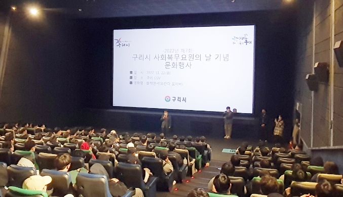[한국기자연대] 구리시는 지난 22일 구리CGV 영화관에서 구리시 행정관서 및 사회복지시설에서 근무 중인 210여 명의 사회복무요원을 대상으로 '2022년 제7회 사회복무요원의 날 행사'를 개최했다.