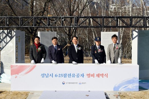 성남시는 이날 오전 11시 분당 중앙공원(역말광장 인근)에서 신상진 성남시장과 박민식 국가보훈처장 등 200여 명이 참석한 가운데 ‘6·25 참전유공자 명비 제막식’을 했다.