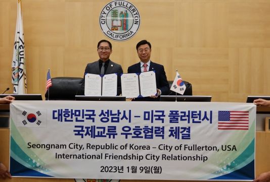 [한국기자연대] 성남시와 미국 풀러턴(Fullerton)시가 경제, 문화, 교육 등 다방면의 우호협력교류를 위한 협약을 체결했다.