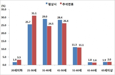 연령층별로는 41~50세 운전자가 26.9%를 차지해 가장 많은 교통사고를 냈으며, 30세 이하 운전자에 의한 사고는 25%로 평상시 20.3%보다 4.7%P 사고발생이 늘었다.