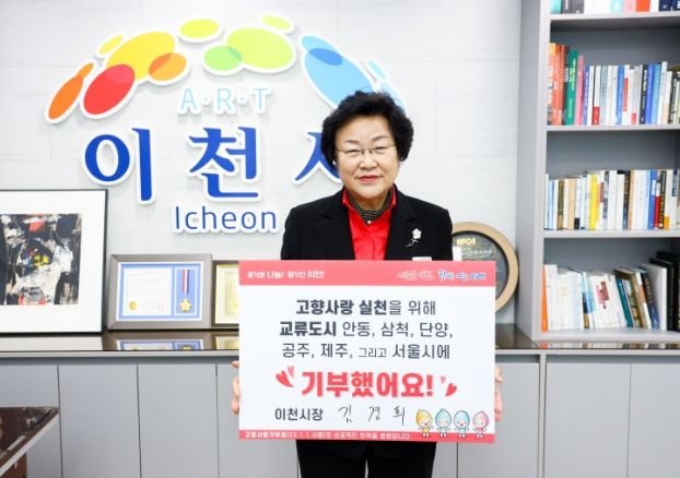 [한국기자연대] 김경희 이천시장은 21일 올해 첫 시행된 고향사랑기부제의 성공적인 정착 및 기부 참여 분위기 확산을 위해 고향사랑기부 인증 챌린지에 동참했다.