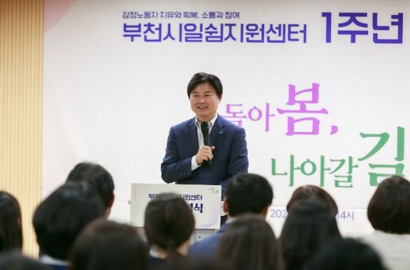 [한국기자연대] 부천시가 감정노동자의 치유와 회복, 소통과 증진을 지원하는 여성친화사업의 새로운 모델로 전국 최초로 조성한 부천시 일쉼지원센터가 지난 27일 1주년 기념식을 개최했다.