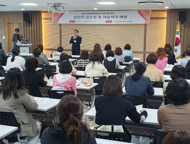 이날 연수는 젠더십향상교육원 유정흔 강사의 ‘성인지 감수성 및 아동학대 예방’ 교육을 진행하여 돌봄교실에서 학생들을 지도하는 초등보육전담사가 변화하는 사회문화와 기존의 사고, 인식체계, 관점에 대한 점검을 통해 ‘누구나 존중받는 올바른 성 가치관 함양’과 돌봄 현장에서 아동학대를 조기 발견하고 보호하여 ‘늘 봄처럼 따뜻하고 안전한 돌봄서비스를 제공’할 수 있도록 하는데 중점을 두었다.