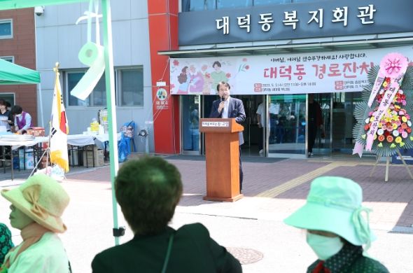 이날 경로잔치에서는 어르신들께 장수상과 효행상 표창을 수여하고 대덕동 새마을부녀회에서 정성으로 마련한 음식을 대접했다. 또한 풍물패 공연 등 다양한 공연이 펼쳐져 분위기를 고조시켰다.