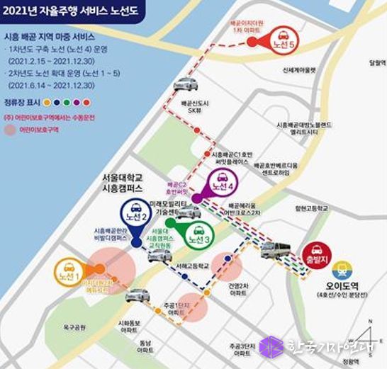 시는 지난 2년간 서울대학교와 협업해 국토교통부 주관 자율주행 모빌리티 ‘마중서비스’ 시범사업을 배곧동 일대에서 운영하며 자율주행 모빌리티 서비스를 적극 시행해왔다.