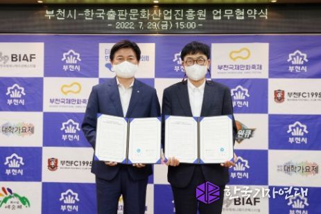 [한국기자연대] 부천시와 한국출판문화산업진흥원은 지난 7월 29일 부천 책문화센터 조성과 운영을 통한 독서문화 발전, 지역의 창작 및 출판진흥을 위해 상호협력하기로 뜻을 모았다.