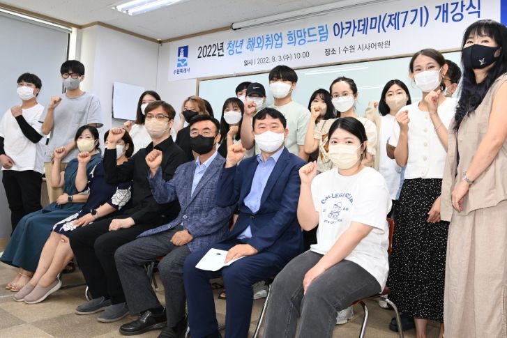 수원시는 3일 오전 10시 팔달구 수원시사어학원에서 ‘2022년 청년 해외취업 희망드림 아카데미’ 제7기 교육 개강식을 열었다.