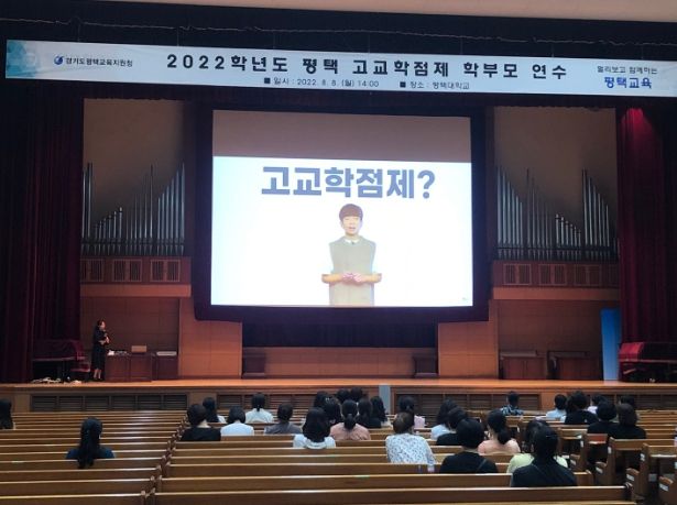 [한국기자연대] 경기도평택교육지원청은 8일 평택대학교 90주년 기념관에서 오후 2시부터 4시간 동안 평택 남부지역 초・중・고 학부모를 대상으로 평택형 다사리 고교학점제 운영을 위한 연수를 개최하였다.