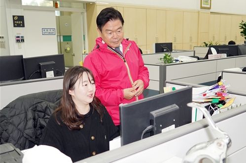 [한국기자연대] 이필형 동대문구청장은 지난 17일 발생한 전국 행정망 오류 사태와 관련하여 복구가 완료된 20일 오전 청사 1층 민원 창구에서 업무가 원활하게 처리되는지 살폈다.