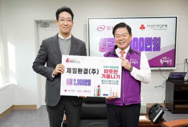 [한국기자연대] 동대문구는 21일 오전 9시, 제일환경(대표 한진욱)에서 어려운 이웃을 위한 따뜻한 겨울나기 성금 2,000만 원을 기탁했다고 밝혔다.