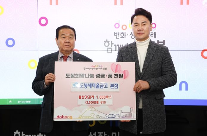 [한국기자연대] 도봉구는 지난 11월 24일 도봉구청에서 MG도봉새마을금고 본점과 돌산갓김치 후원 전달식을 가졌다고 밝혔다.