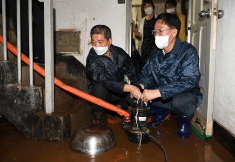 이 시장은 직접 배수펌프 작동 여부를 확인하며 공무원들에게 피해복구에 만전을 기할 것을 당부하고 비닐하우스, 다리 침수 현장을 살펴보며 주민들을 위로하고 빠른 시일 내에 복구가 이뤄질 수 있도록 최선을 다할 것을 약속했다.