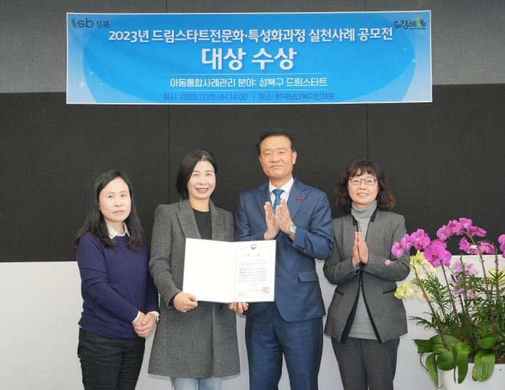 [한국기자연대] 서울 성북구 드림스타트가 지난 11월 29일 한국보건복지인재원이 주최한 2023년 드림스타트 전문화·특성화 과정 현장 적용 실천사례 공모전에서 대상을 수상했다.