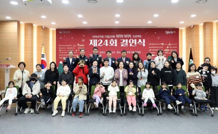 [한국기자연대] 강동구가 지난 6일 ‘다자녀 가정-기업(단체) WIN-WIN 프로젝트’ 24번째 결연식을 구청 5층 대강당에서 개최했다고 밝혔다.