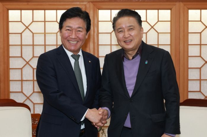 [한국기자연대] 김영환 도지사는 8일 충북도청을 방문한 박종범 ㈔세계한인무역협회 신임 회장을 만나 충북의 산업, 예술분야 해외 진출 등 협력 방안을 논의했다.