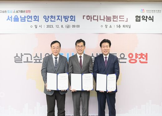 [한국기자연대] 양천구는 서울시 자치구 최초로 기독교대한감리회 서울남연회 양천지방회 및 양천사랑복지재단과 지역 내 의료 사각지대 취약계층 지원을 위한 ‘하디나눔펀드’ 협약을 8일 체결했다고 밝혔다.