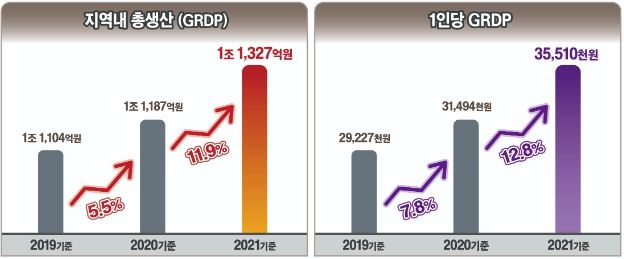 GRDP는 지역 내에서 창출된 최종 생산물 가치의 합으로 각 시․군내에서 경제활동별로 얼마만큼의 부가가치가 발생됐는지를 나타내는 경제지표다.