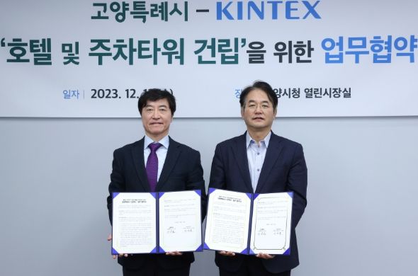 [한국기자연대] 고양특례시와 킨텍스가 12월 13일, 고양시청 열린시장실에서 ‘호텔 및 주차타워 건립을 위한 업무 협약’을 체결했다.