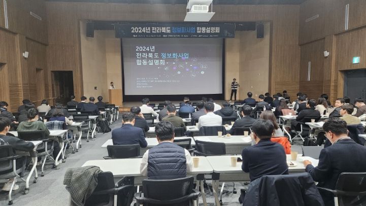 [한국기자연대] 전라북도는 13일 전북테크비즈센터 1층 대강당에서 100여명의 도내 정보통신기술 관련 종사자가 참여한 가운데“2024년 전라북도 정보화사업 합동설명회”를 개최했다.