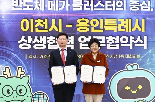 용인특례시는 13일 오후 이천시와 ‘반도체 산업 육성과 발전을 위한 상생협력 업무협약’을 체결했다.