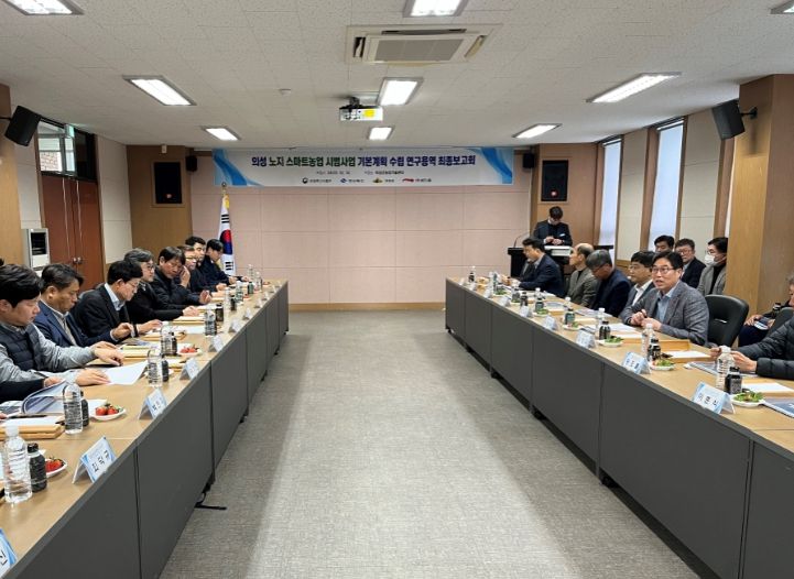[한국기자연대] 의성군은 12일 농업기술센터에서 농림축산식품부 공모 사업인 ‘노지 스마트농업 시범사업’ 기본계획수립 용역 최종보고회를 가졌다.