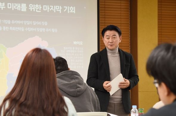 [한국기자연대] 김동근 의정부시장이 12월 13일 기업인들을 대상으로 ‘기업하기 좋은 도시 의정부를 위한 비전’이라는 주제로 특강을 진행했다.