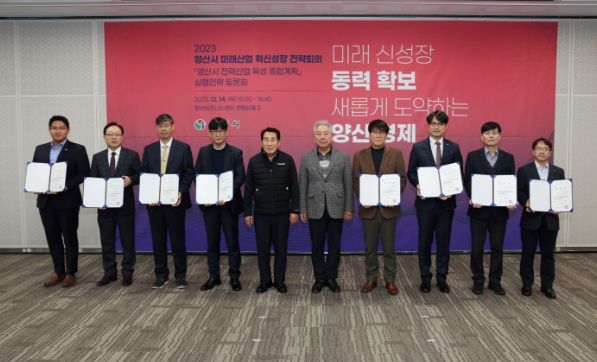 [한국기자연대] 양산시는 14일 양산비즈니스센터에서 ‘2023년 양산시 미래산업 혁신성장 전략회의’를 열고 제조산업 산·학·연 전문가와 기업 관계자 등 60여 명이 참석한 가운데‘양산시 전략산업 육성 종합계획’을 공유하며 실행전략을 모색하는 시간을 가졌다.