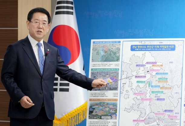 [한국기자연대] 김영록 전라남도지사는 14일 도청에서 무안군을 ‘세계를 잇는 서남권 게이트웨이, 인구 20만 스마트 공항도시’로 육성하기 위한 3조 원 규모의 초대형 계획 ‘무안 미래 지역발전 비전’을 발표했다.