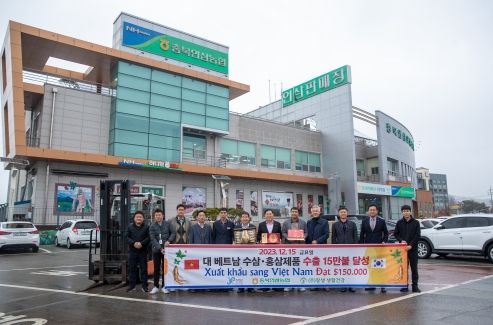 [한국기자연대] 충북 증평군은 15일 충북인삼농협 본점에서 베트남 수출 상차식을 개최했다고 밝혔다.