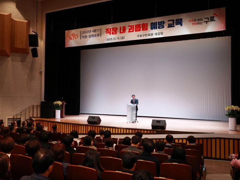 훈시에 이어 이보규 21세기사회발전연구소장이 구로구 직원들을 대상으로 직장 내 괴롭힘 방지, 청렴한 공무원의 자세 등에 대해 교육하고 이를 끝으로 정례조례가 마무리됐다.