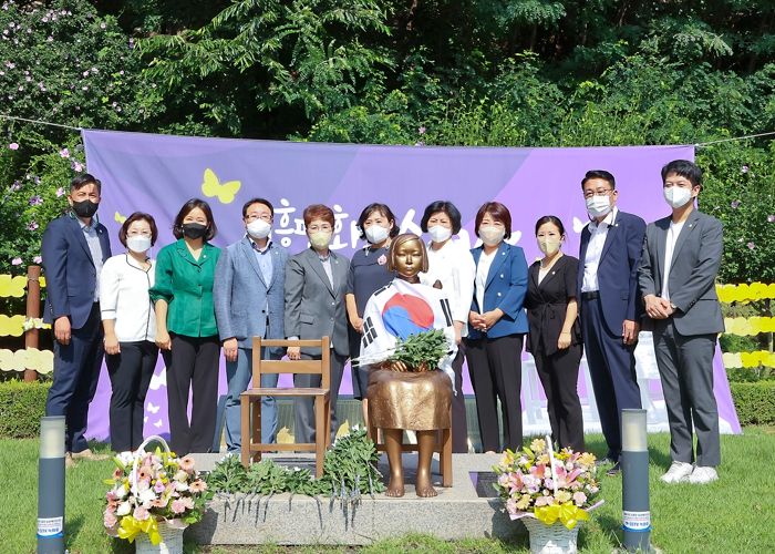 [한국기자연대] 시흥시의회가 12일 정왕동 옥구공원 소녀상 앞에서 열린 2022년 시흥평화의 소녀상 건립 6주년 기림식에 참석해 일본군 위안부 피해자들의 아픔을 위로하며 추모하는 시간을 가졌다.