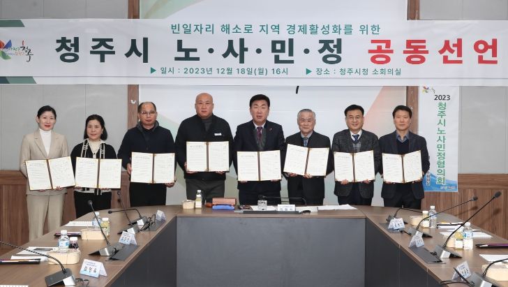 이와 함께 안정된 노사문화 조성 및 근로환경을 개선하고 지역 노동시장의 빈 일자리 문제 해결하기 위해 노사민정이 함께 노력을 다짐하는 내용의 청주시 노사민정 공동선언문을 채택했다.