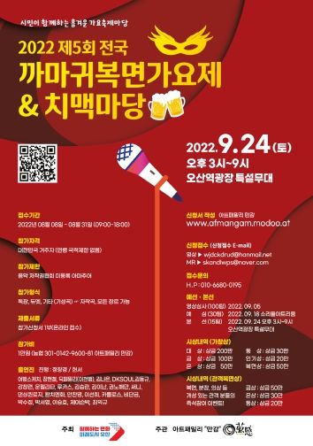 [한국기자연대] 오산시는 다음달 24일 제5회 전국 까마귀 복면 가요제를 오산역광장 특설무대에서 4년만에 야외행사로 진행한다고 11일 밝혔다.