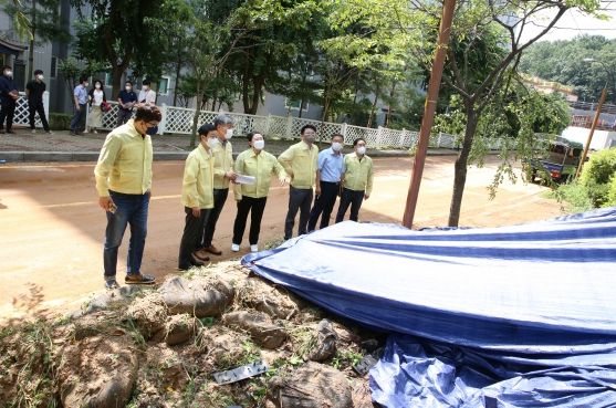 한승일 의장과 의원들은 관련 부서로부터 호우 피해 현황과 비상근무 실시 및 피해복구 추진 현황, 침수 피해 가구 재난지원금 지원 계획 등에 대해 보고를 받은 후, 관내 주택침수 지역과 검단 지역 경관녹지 사면 붕괴 위치를 방문하여 피해 및 복구 현황을 직접 확인하고 재발 방지 대책에 대해 의견을 나눴다.