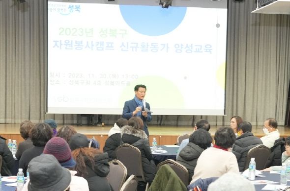 [한국기자연대] 서울 성북구가 동 단위 자원봉사 활성화를 촉진할 수 있는 자원봉사 거점인 동 자원봉사캠프의 예비활동가 69명이 참여한 가운데 지난 11월 30일 성북구청 4층 성북아트홀에서 성북구 자원봉사캠프 양성교육을 개최했다.