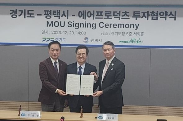 [한국기자연대] 평택시는 평택 포승(BIX)지구 내 세계적인 산업용 가스 업체인 에어프로덕츠와 청정그린수소 생산공장 설립을 위한 투자협약을 20일 체결했다고 밝혔다.