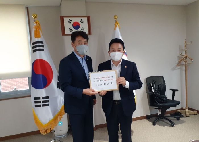 [한국기자연대] 하은호 군포시장이 지난 10일 국토교통부를 방문해 1기 신도시 활성화를 위한 특별법 신속 제정 등 10건을 건의했다.