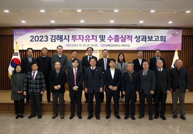 [한국기자연대] 김해시는 20일 김해상공회의소 대회의실에서 2023년 투자유치 및 수출실적 성과보고회를 개최했다. 이번 성과보고회는 연말 예정된 제3회 김해무역인상 시상 및 투자협약 체결식을 병행해서 개최했으며, 김해시 투자유치자문단과 기업 관계자 등이 행사에 참석했다.