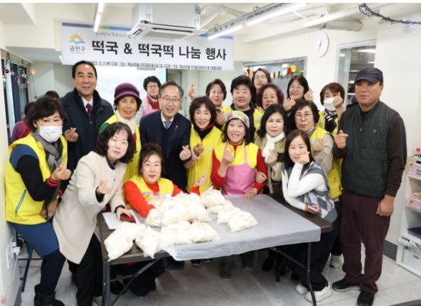 [한국기자연대] 금천구는 12월 21일 독산1동 자원봉사캠프가 독산1동 복숭아마을 주민협의체와 함께 어르신과 복지 취약계층에게 떡국 나눔 행사를 개최했다고 밝혔다.