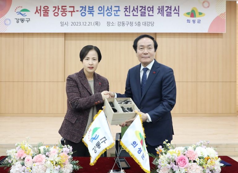이수희 강동구청장은 “이번 친선결연을 통해 강동구와 의성군이 더 가까워지는 것은 물론 다양한 분야에서 활발한 교류와 상호 발전으로 이어지길 바란다”라며, “앞으로 단단한 협력 관계를 유지해 양 도시가 상생 발전할 수 있도록 함께 노력하겠다”라고 말했다.
