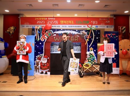 문헌일 구로구청장은 산타로 깜짝 변신했다. 문 구청장은 고려대학교 구로병원이 준비한 마술쇼에 참여해 간단한 마술을 선보였다.
