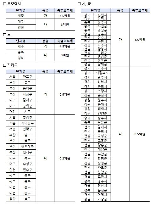 각 지자체는 그룹별 평가등급에 따라 특별교부세(79.3억원)을 차등 지급받게 된다.