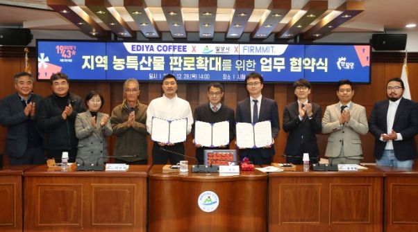 [한국기자연대] 밀양시는 28일 시청 소회의실에서 우수 농특산물의 유통판로 개척 및 확대를 통한 지역 농업인의 매출 증대에 기여하기 위해 ㈜이디야, ㈜퍼밋과 3자 간 상호협력 업무협약을 체결했다고 밝혔다.