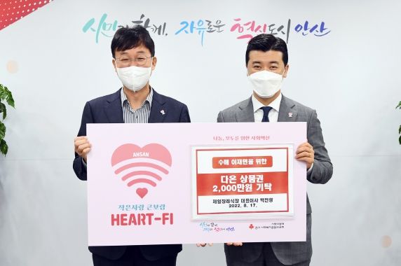 [한국기자연대] 안산시는 17일 박천광 제일장례식장 대표이사로부터 수해 이재민을 위한 성금 2천만 원을 안산화폐 다온으로 기탁받았다.