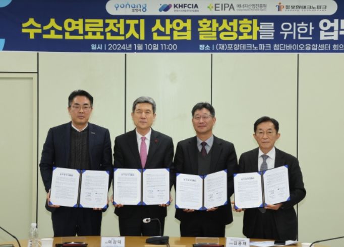 포항시는 10일 한국수소연료전지산업협회, 에너지산업진흥원, (재)포항테크노파크와 함께 ‘수소연료전지 산업 활성화를 위한 업무협약’을 체결했다.